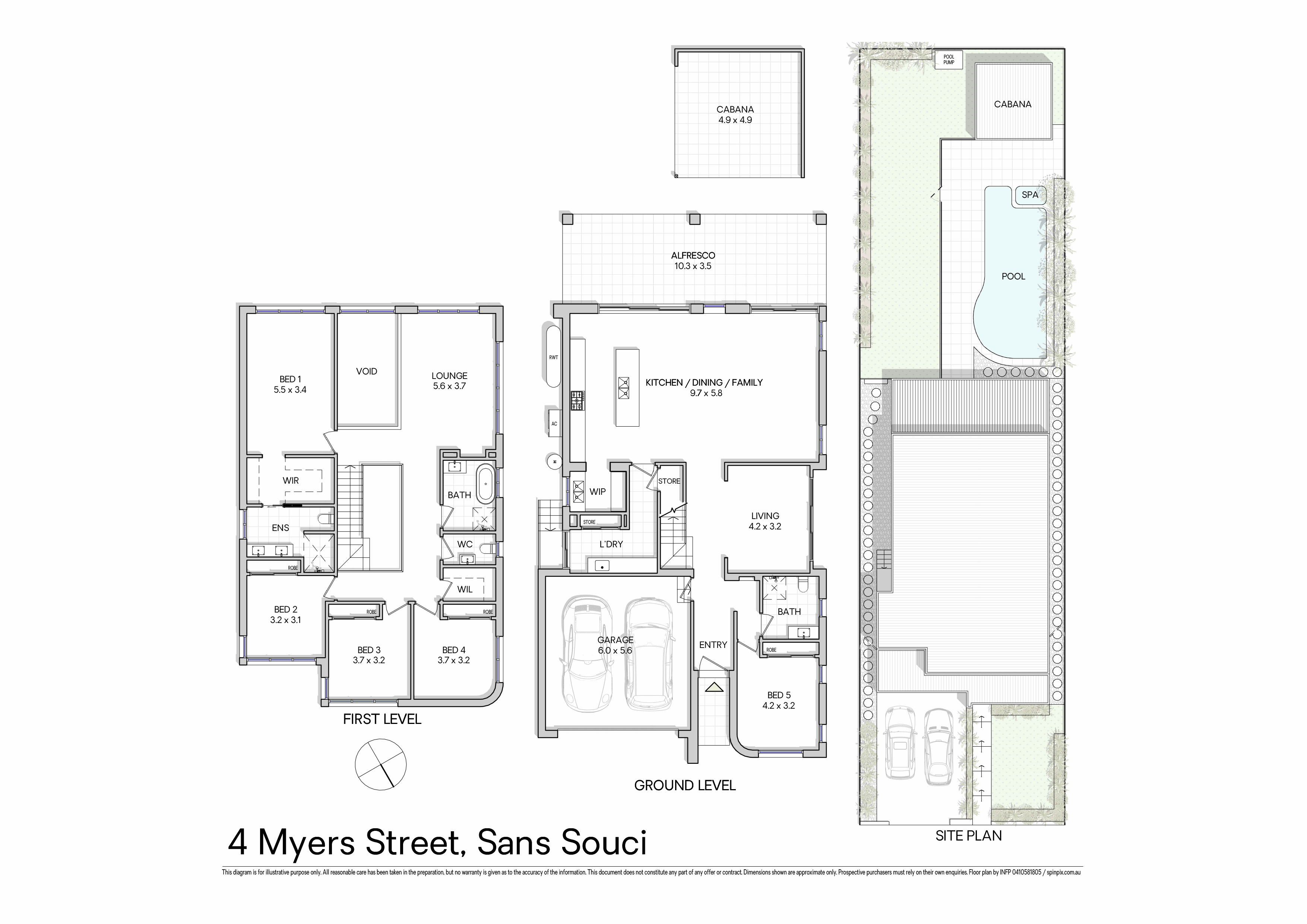 Open-plan living and dining areas Contemporary kitchen with butler's pantry and bar Five bedrooms including master with ensuite and walk-in robe Multiple living zones including upstairs rumpus Resort-style backyard with pool and cabana Alfresco entertaining and child-friendly lawn Stylish bathrooms with freestanding bath Timber flooring, high ceilings, ducted air conditioning Double lock-up garage with internal access plus off-street parking